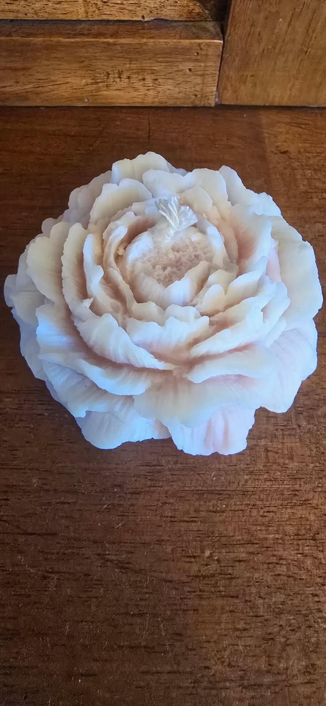 Bougie en forme de pivoine, senteur pastèque melon.