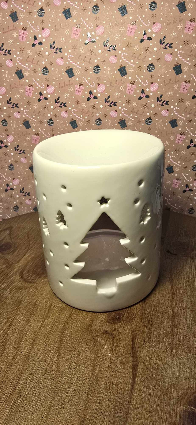 Brûleur couleur blanc avec dessin de sapin .